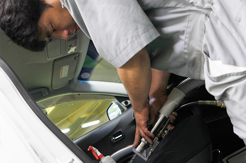 車専用の協力な掃除機や、洗浄液を使用したブラシなどを使用し確実に汚れを落とし、頑固な匂いなども綺麗に洗浄していきます。